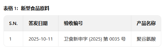 具体来看,新型食品原料聚谷氨酸凭借天然可降解、多功能的特性,在食品保水、增稠、保鲜等场景中优势显著,未来有望成为绿色功能配料新选择。